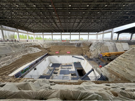 4月16日下午,記者在探訪武王墩墓考古現場時看到,考古發掘與實驗室保護研究工作正在同步有條不紊地推進。